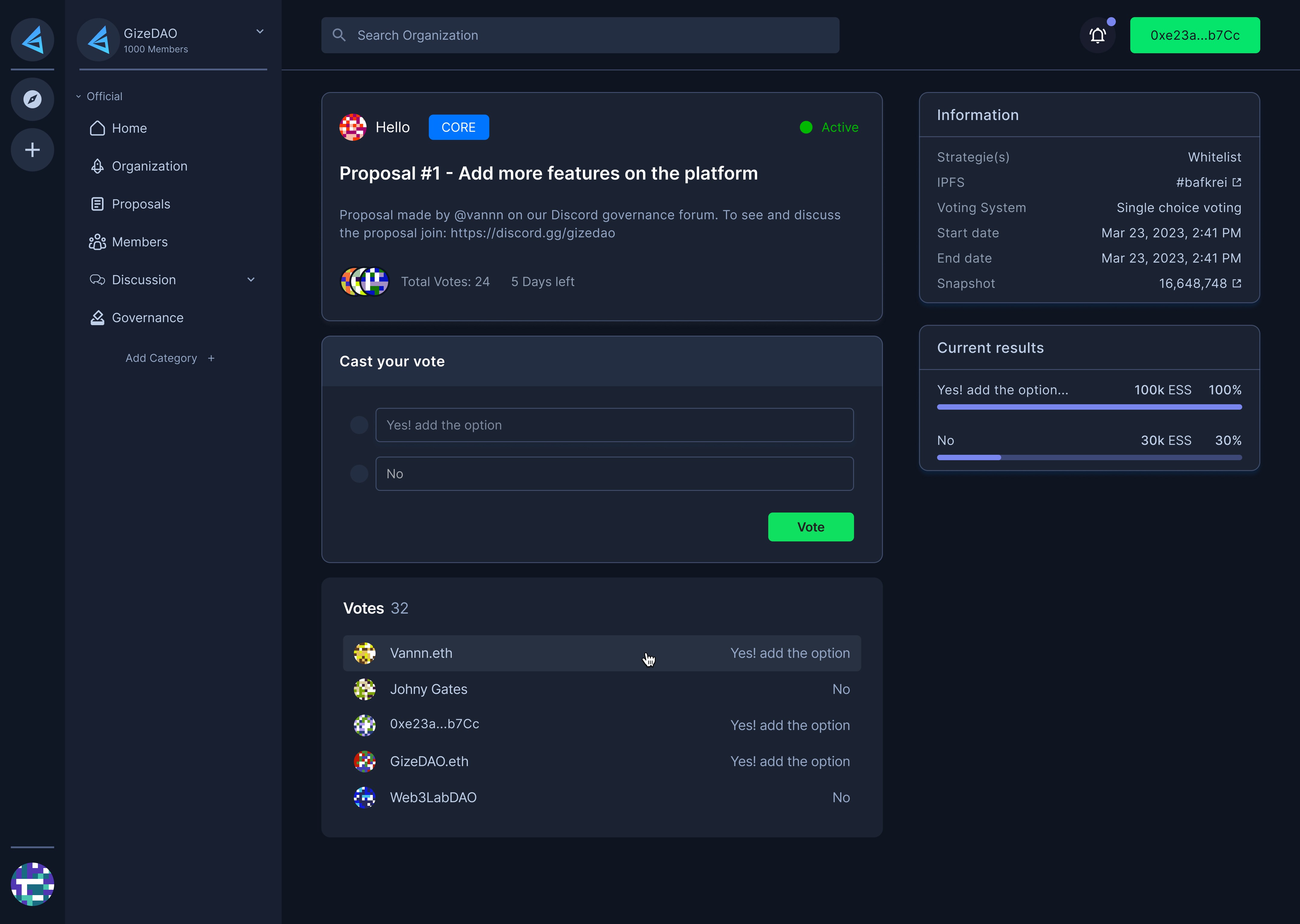 Here, what I did was to choose the right framework and platform for some features such as governance, voting mechanism, and financial management.